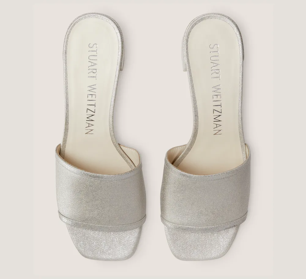 SKU: 80733665d3dda9da6b332286 Categories: Flat & Low Heel Sandals, MOST-WANTED, SANDALS, Sandals, SHOES, The SW Extended Sizes Collection, Trending: Block Heels Tags: Metallic Linen/Silver, Stuart Weitzman Brand: Stuart Weitzman