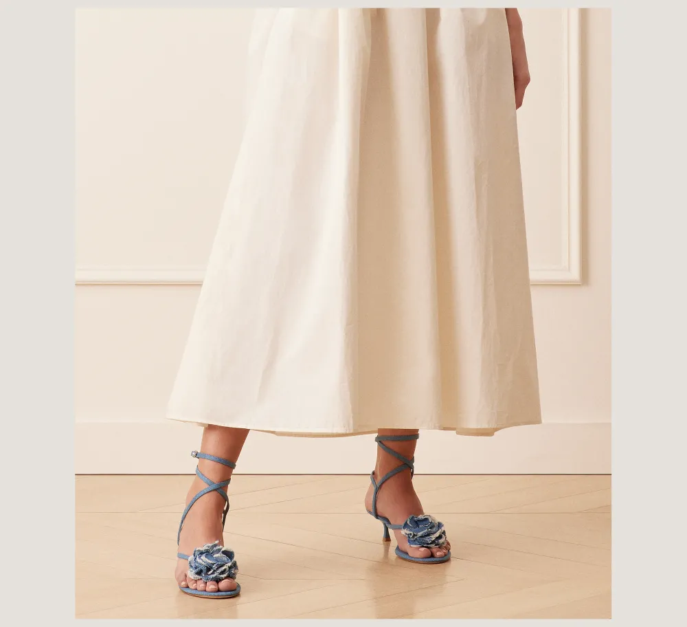 The BELIZE 50 SANDAL is designed to make a statement. Defined by a striking handsewn floral appliqué, this silhouette is definitively artful. It is crafted by SW artisans in Spain with sleek wraparound straps that perfectly frame the calf while also offering extra wear-all-day support. A sculptural 50-mm heel offers just the right amount of lift for any outfit, any time of the day.