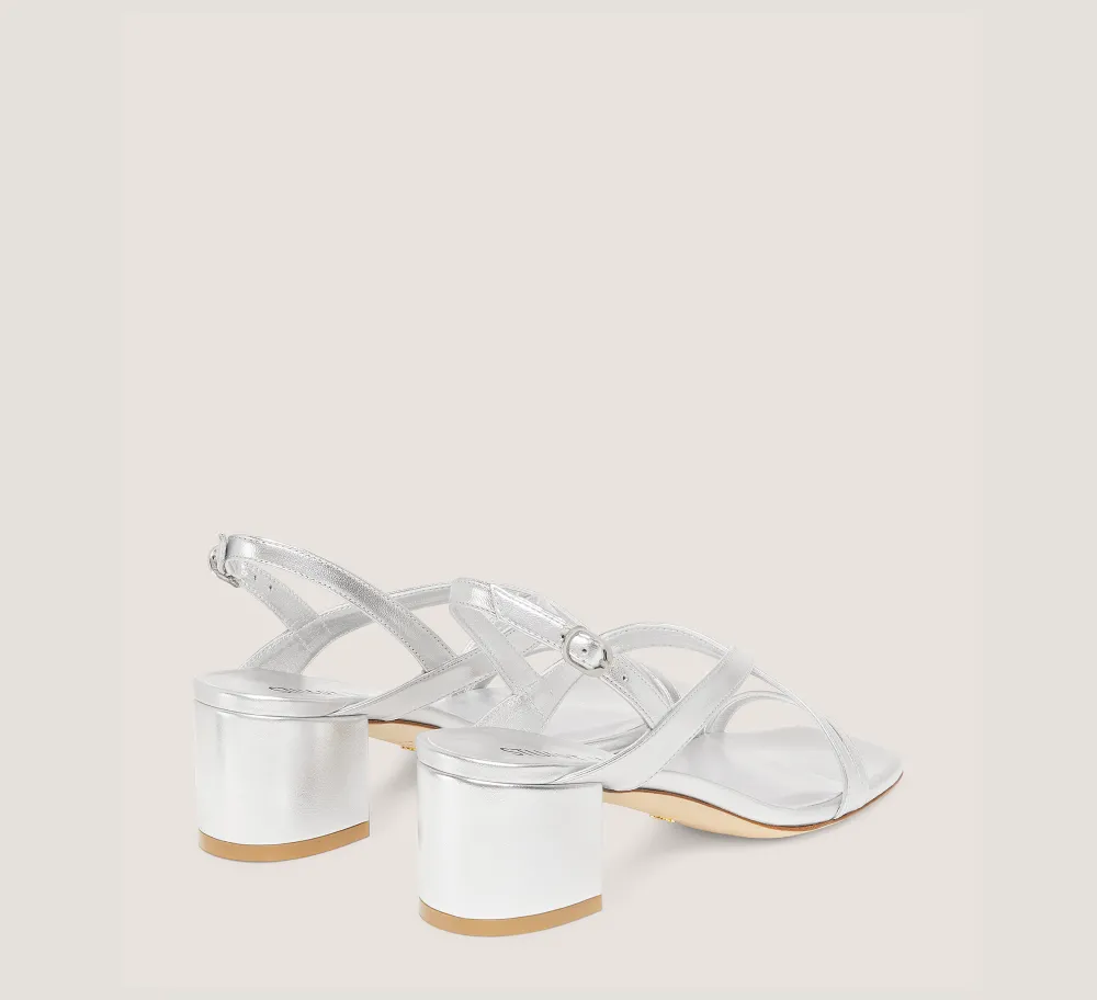 Stuart Weitzman Mid Heel Sandals|Trending: Block Heels-CHANGE LOCATION Liquid Metallic Leather/Silver