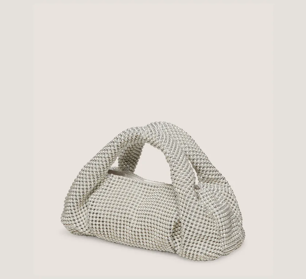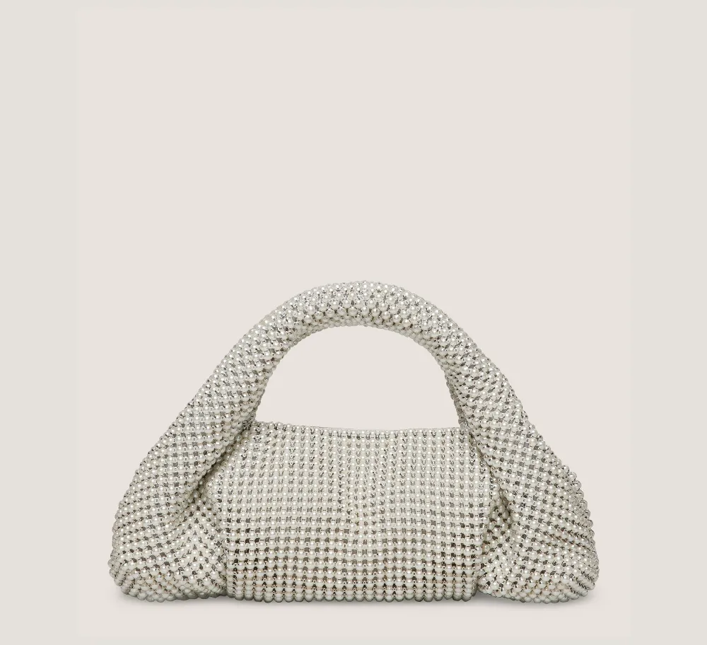 The MODA PEARL MINI TOTE delivers a timelessly glamorous twist on our best-selling party-ready MODA handbag design. Crafted by our artisans in Italy from an intricate pearl-adorned mesh material, this look is definitively luxe. It features a softly structured silhouette with subtle draping that further sets it apart and opens to reveal a surprisingly spacious interior that fits everything you need for your next special occasion. Wear it as a shoulder bag using its detachable chain strap or as a compact top handle depending on your look.