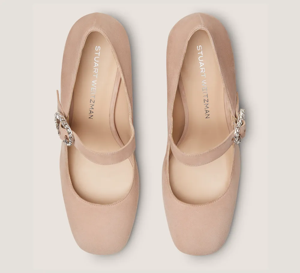 The SLOANE 60 MARY JANE’s modern, glamourous sensibility makes it a must-have for any occasion. Design highlights include a luxe crystal-embellished buckle, a distinctive rounded square toe and a 60-mm block heel that adds height without sacrificing comfort.