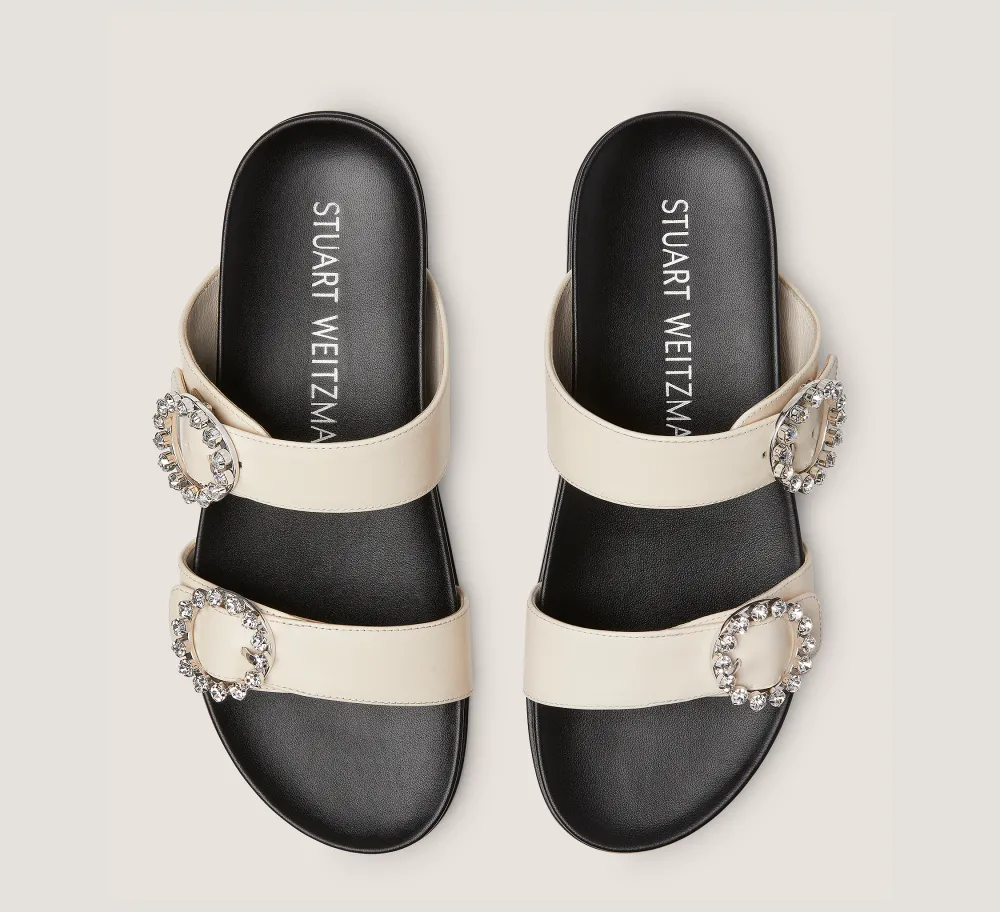 The BLINGRING BUCKLE SPORT SLIDE masters a harmonious balance of laid-back and luxe: Highlights include its glamorous, crystal-embellished buckles and flat, contoured footbed designed for easy comfort. The result is a striking yet versatile look you’ll want to wear with any warm-weather outfit.