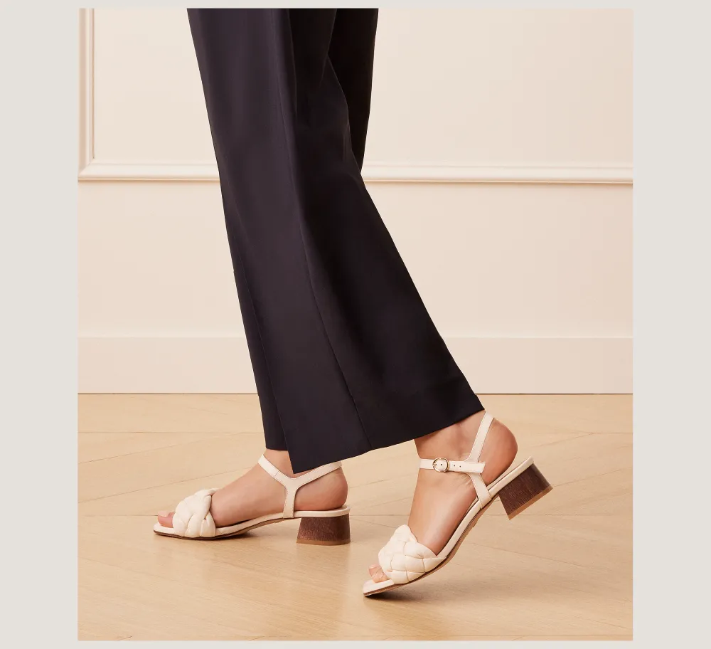 Stuart Weitzman Flat & Low Heel Sandals|Trending: Block Heels-CHANGE LOCATION Lacquered nappa leather & wood/Seashell & walnut