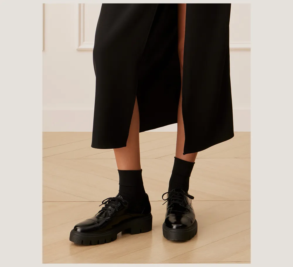 The NOLITA LACE-UP OXFORD reimagines the classic menswear-inspired lace-up with a modern lug sole. Crafted by our artisans in Spain, it features a timeless, minimalist sensibility. The result is a look that’s at once tailored and effortlessly edgy — and easy to wear with anything in your closet.