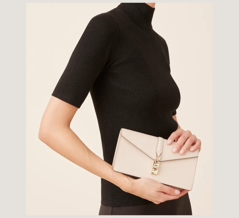 Pull any look together with the MILAN LOVELETTER CLUTCH. Crafted by SW artisans in Italy with our signature focus on style and function, it features a polished twist lock accent on the front and a spacious single gusset construction that opens to reveal 4 interior card slots. Its detachable chain strap enables it to be worn as a crossbody bag or clutch depending on your outfit.